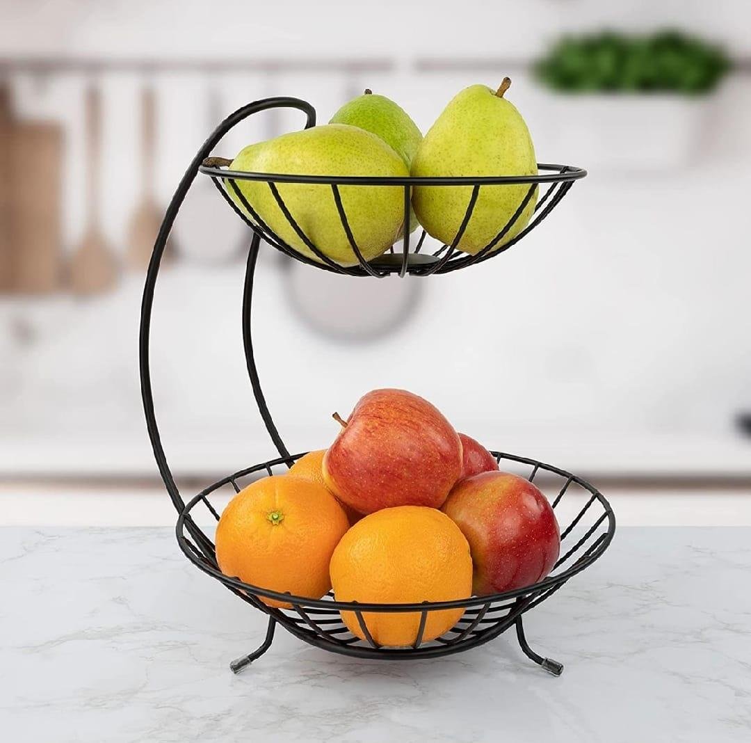 - Fruit Basket/Vegetable Basket/Fruits And Vegetables Basket/Kitchen Organizer/High Quality Multipurpose Double Layer Fruit Basket For Kitchen/Counter Rack In Black Color For Kitchen, Room And Dining Table.